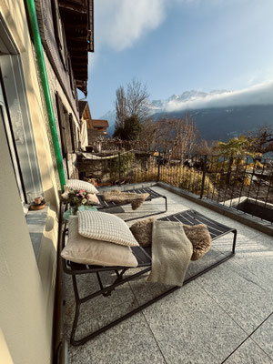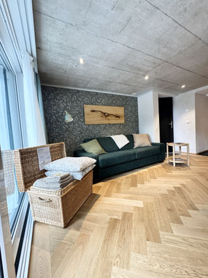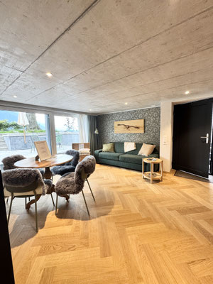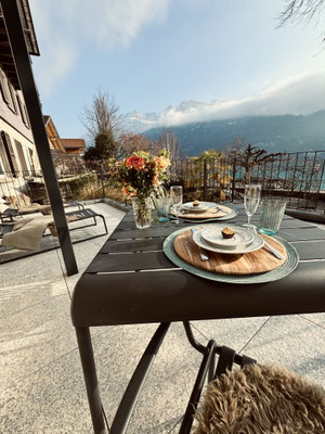Im Erdgeschoss gelegen, lädt diese charmante Wohnung mit einer großzügigen Terrasse zu unvergesslichen Momenten ein – der Blick auf den türkisblauen Brienzer See und die majestätischen Berge ist einfach beeindruckend. Die Unterkunft bietet Platz für vier Gäste und kombiniert Komfort mit Charakter. Sie verfügt über ein geräumiges Schlafzimmer, ein ebenso großzügiges Wohnzimmer mit komfortablem Bettsofa für zwei Personen, einen Ofen mit Trittofenfunktion, eine voll ausgestattete Küche mit allen Annehmlichkeiten sowie ein helles Badezimmer. Abgerundet wird das Ambiente durch kunstvolle Arbeiten des Holzbildhauers und Künstlers Beat Schild, die jedem Raum eine besondere Ausstrahlung verleihen. Ein Ort, an dem sich Erholung und Inspiration auf natürliche Weise verbinden.